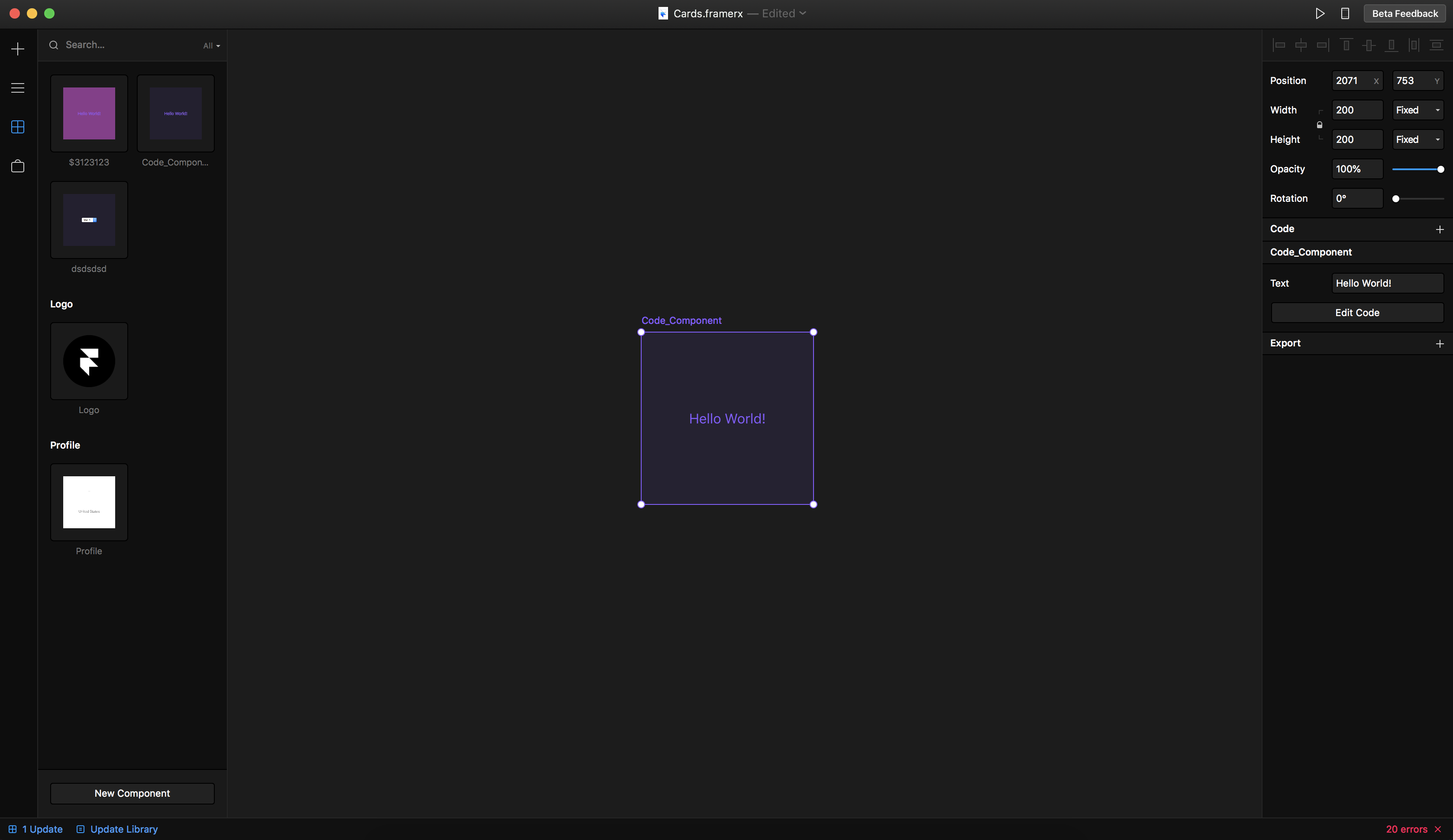 После анонсов я ждал, что Framer X поможет убрать конфликт между разработчиками и кодерами. Код отдельных элементов можно создавать на этапе дизайна и вставлять сразу в продукт. Этого не случилось, потому что при создании кода компонент существует как самостоятельная единица.