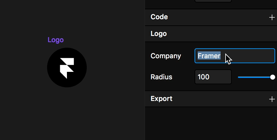 Компоненты из кода могут вести себя довольно гибко. Например, если в компоненте Logo, из встроенного магазина, поменять название компании, то автоматом изменится логотип