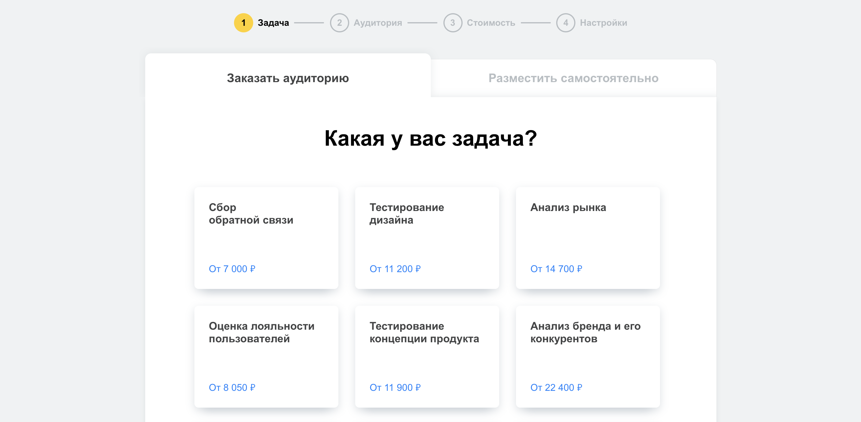 Платный сервис, позволяющий задать целевой аудитории вопросы для проверки гипотез, и получить ответы реальных людей.