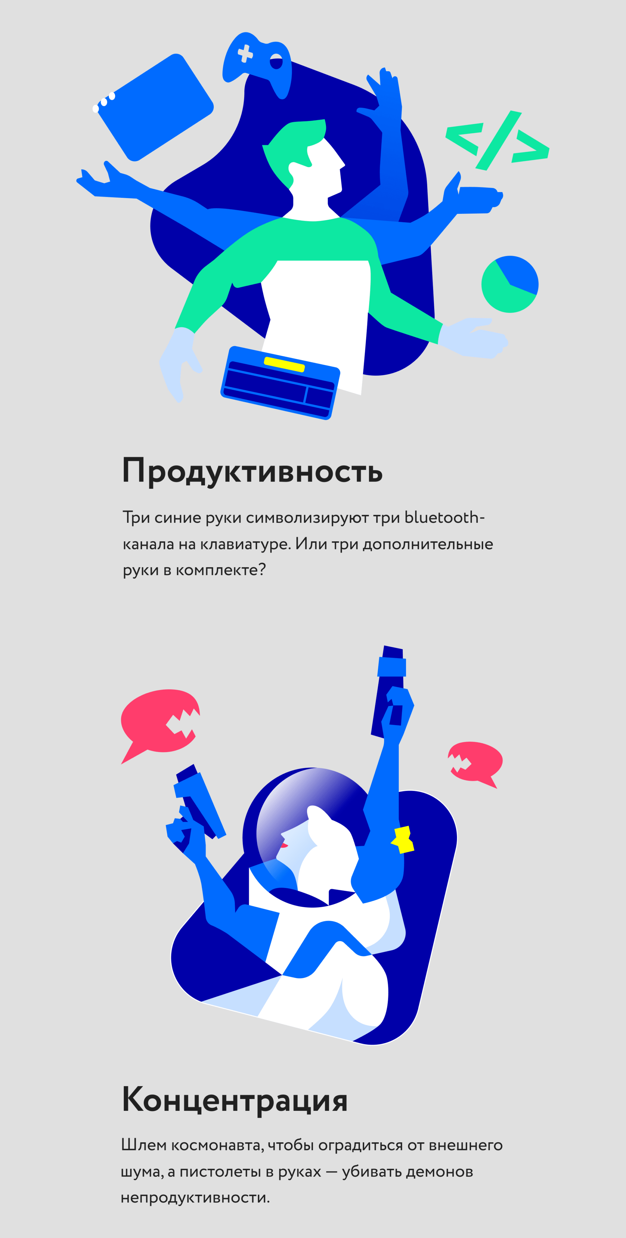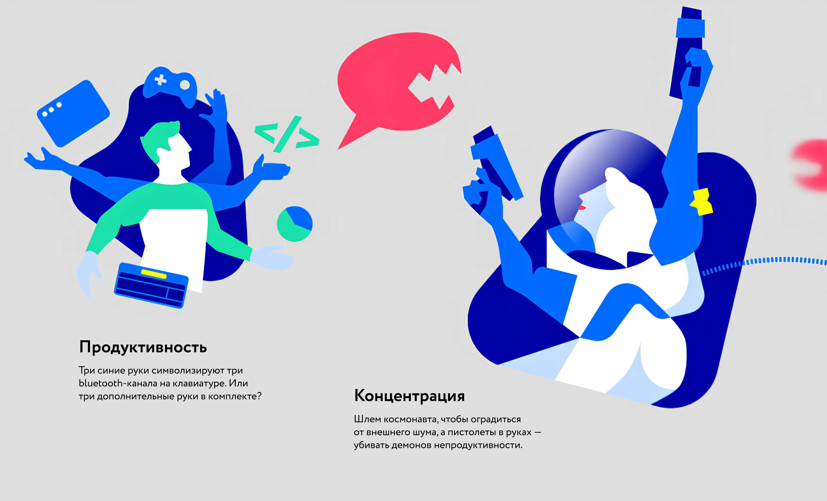 Высокая продуктивность и сфокусированность — основные идеи Clevetura. Рисуем иллюстрации и прячем в них секреты. Подробнее расскажем в кейсе о брендинге.