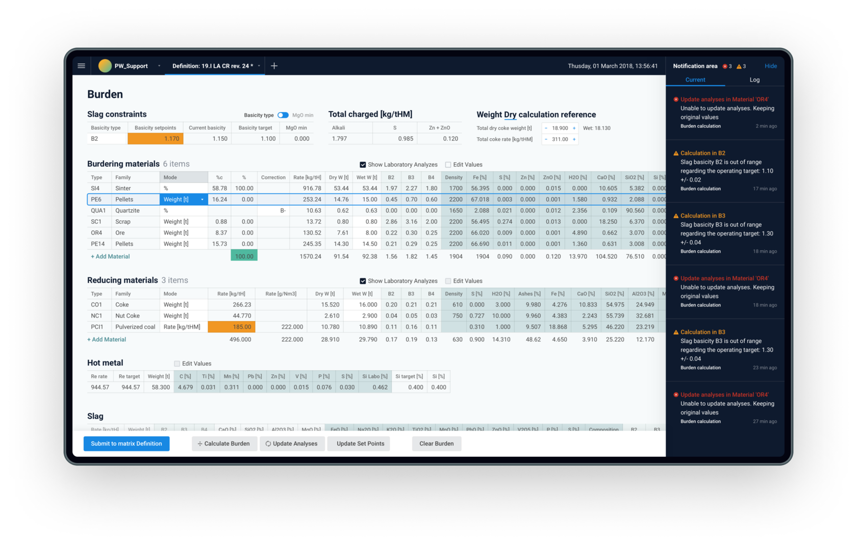 Процесс производства стали и чугуна похож на выпечку хлеба: чтобы все получилось, нужно выбрать правильный рецепт и перепроверить ингредиенты для нужного количества «выпечки». Опытный сталевар-оператор на лету составляет рецепт желаемого материала. Смотрит, какие и сколько исходных материалов в наличии, и планирует очередь выплавки чугуна разных марок.