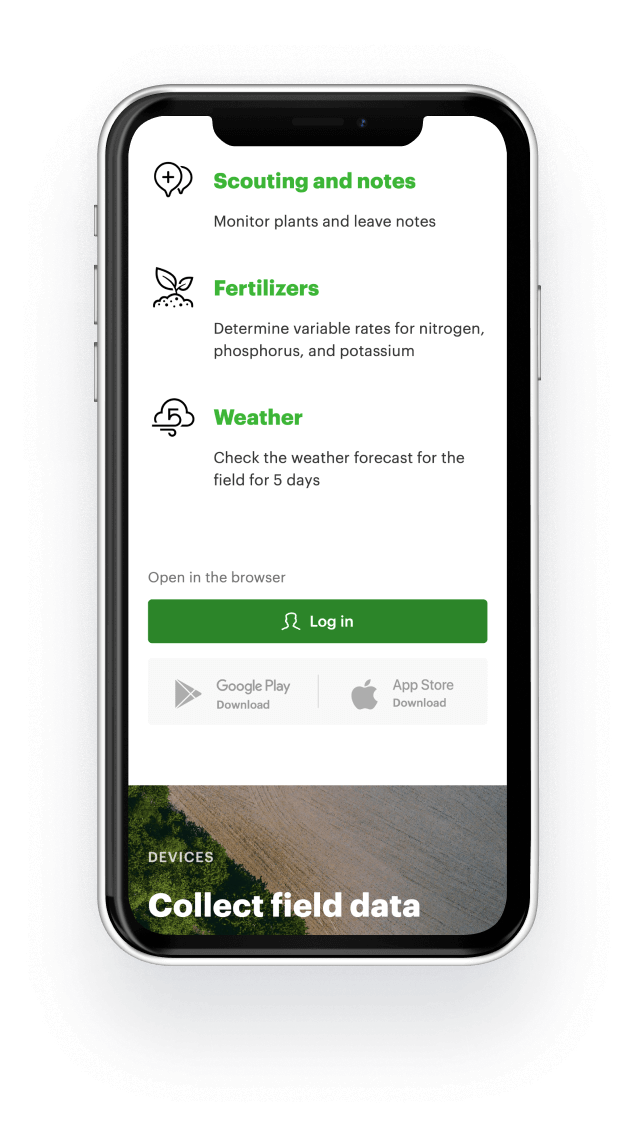Для начала работы фермеру достаточно нажать подсвеченную рамку, чтобы отметить в системе свои поля. Это открывает доступ к основным инструментам: