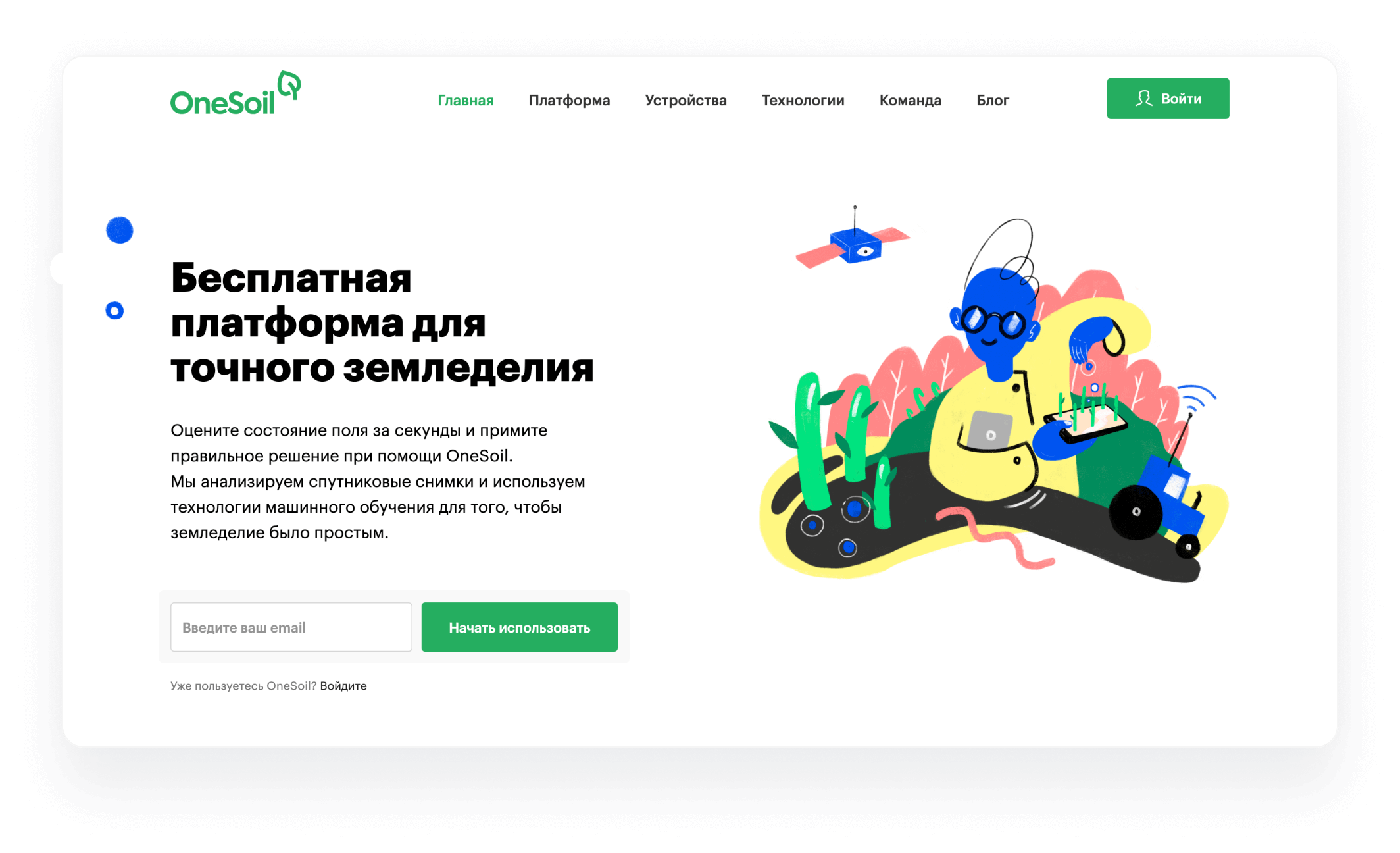 Точное земледелие — это способ вести сельское хозяйство с использованием современных технологий и гаджетов. Компания OneSoil разработала собственную платформу для точного земледелия и выпустила несколько устройств. С их помощью фермеры могут удаленно следить за состоянием растений, почвы и воздуха, а также контролировать расход семян и удобрений.
