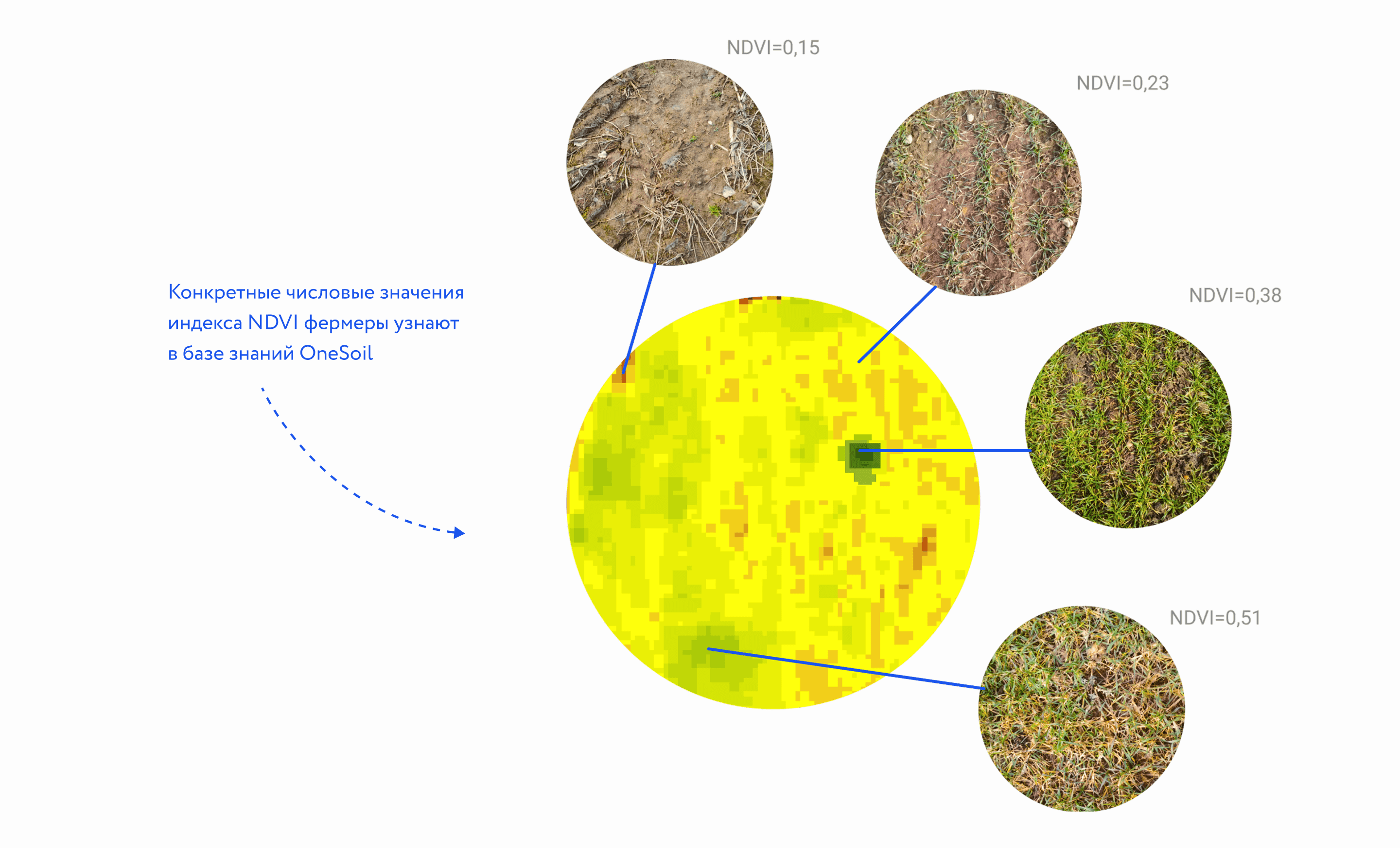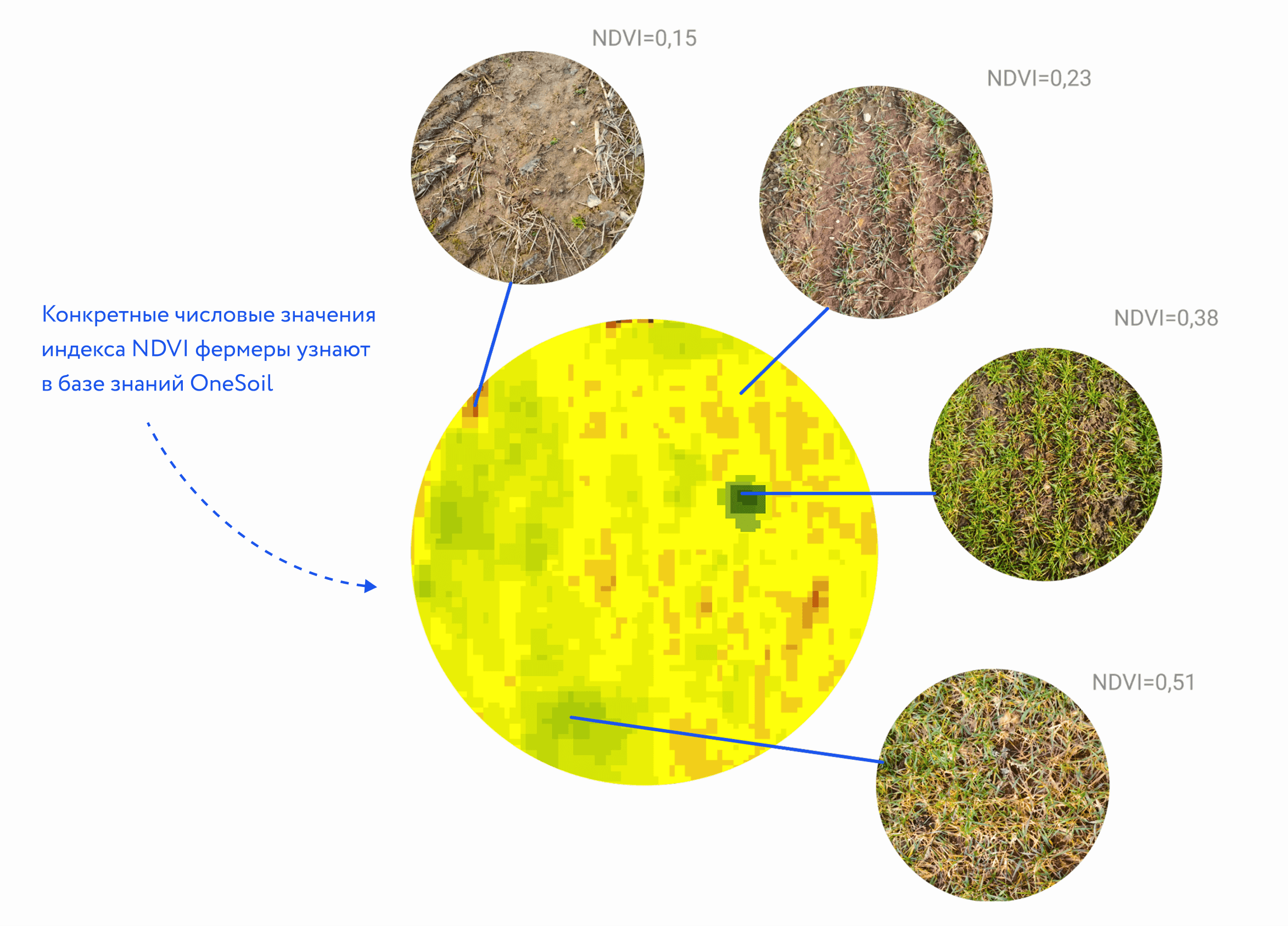 OneSoil обрабатывает спутниковые снимки, и на их основе автоматически определяет NDVI.