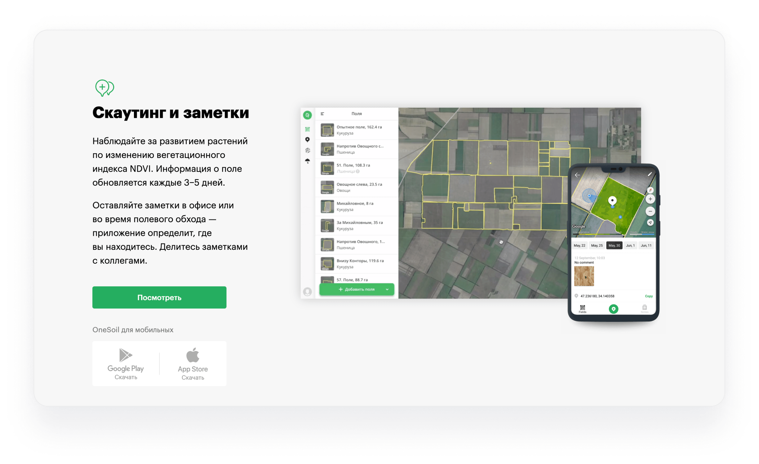 Точное земледелие — это способ вести сельское хозяйство с использованием современных технологий и гаджетов. Компания OneSoil разработала собственную платформу для точного земледелия и выпустила несколько устройств. С их помощью фермеры могут удаленно следить за состоянием растений, почвы и воздуха, а также контролировать расход семян и удобрений.