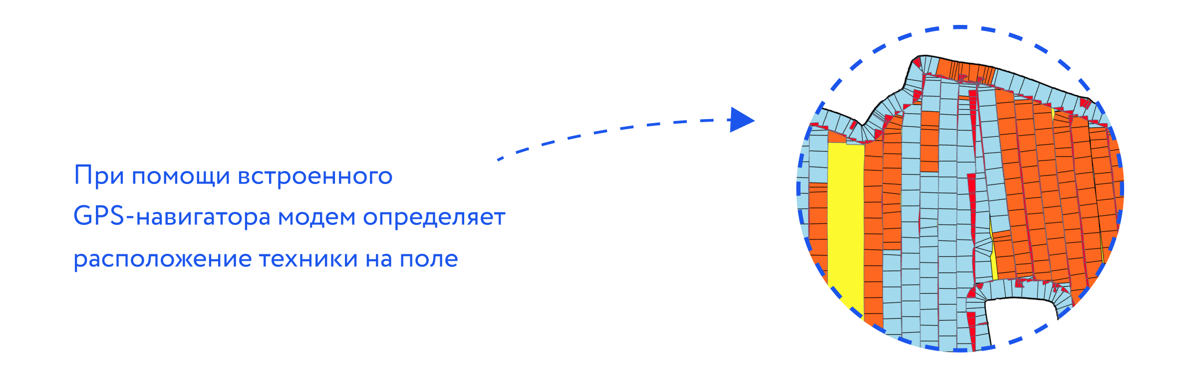Модем помогает фермерам удаленно следить за техникой в полях и контролировать внесение удобрений. Информация отображается в виде карты, в которой видны маршруты, пропущенные и «переудобренные» области. Это помогает вовремя исправить ошибки без вреда для растений.