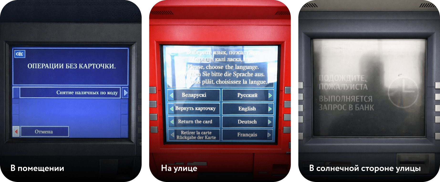 Чтобы правильно разработать устройство самообслуживания, в первую очередь важно учитывать взаимодействие с физической частью устройства: внешнюю среду, размеры, расстояние до устройства и угол наклона экрана.