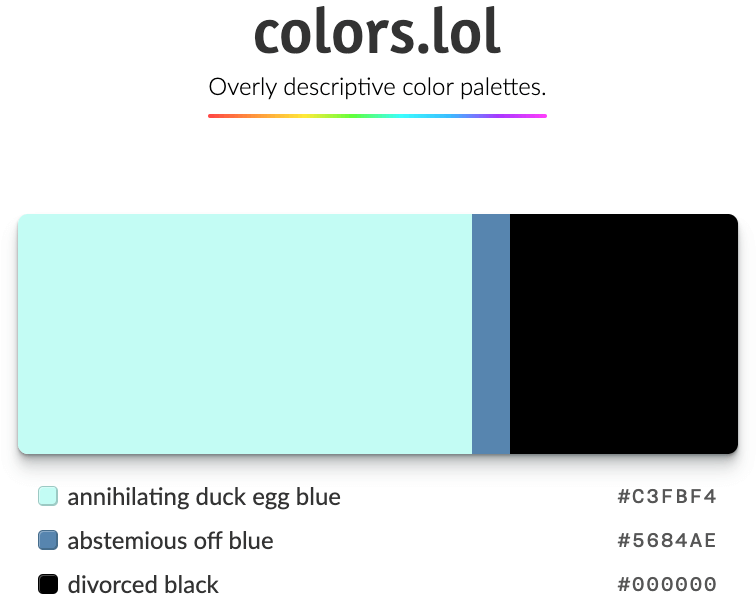 Если не хватает вдохновения, чтобы бодро назвать фирменные цвета в дизайн-системе, подглядывайте на colors.lol.